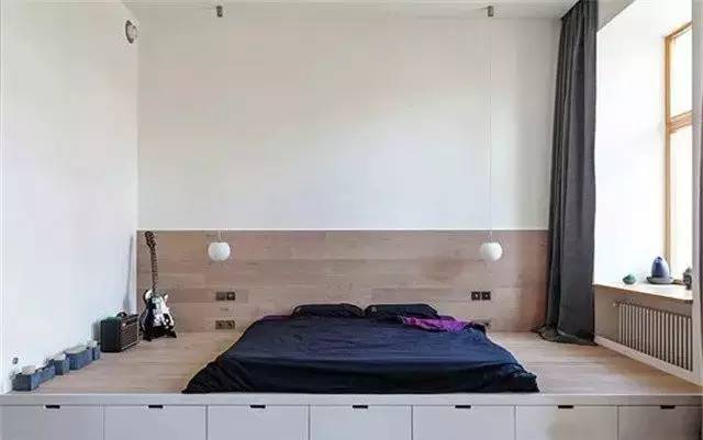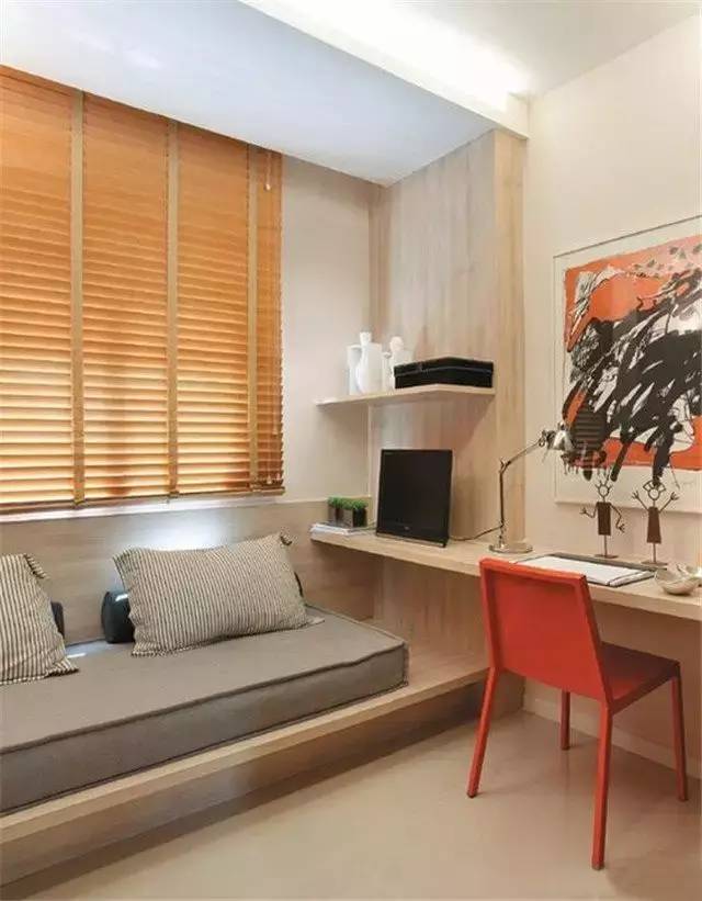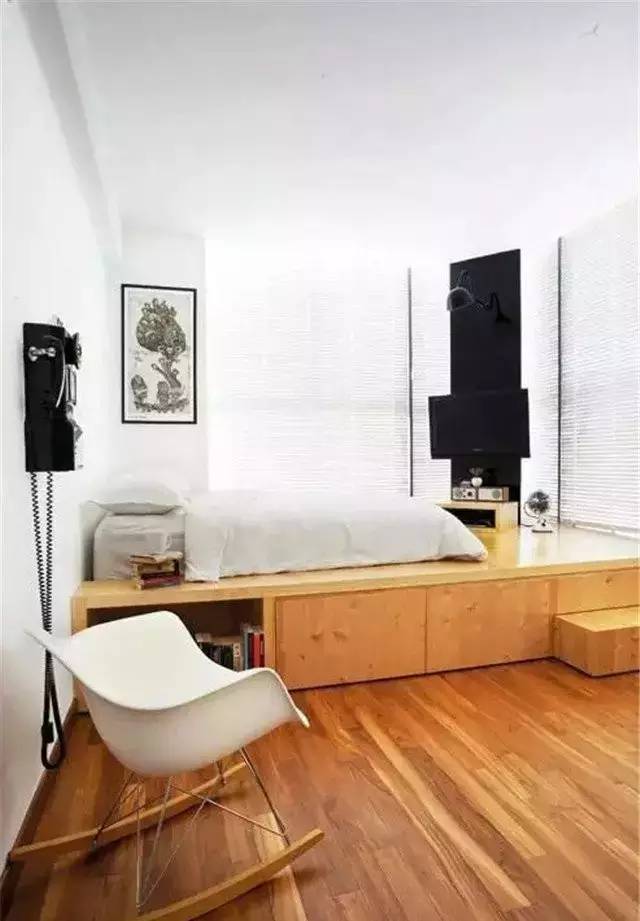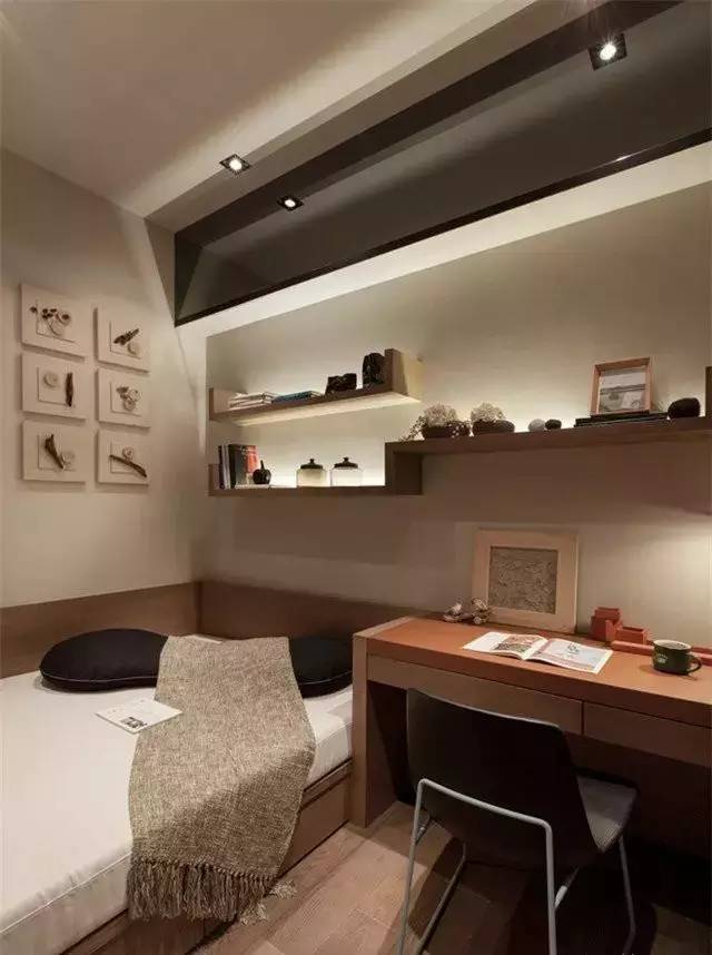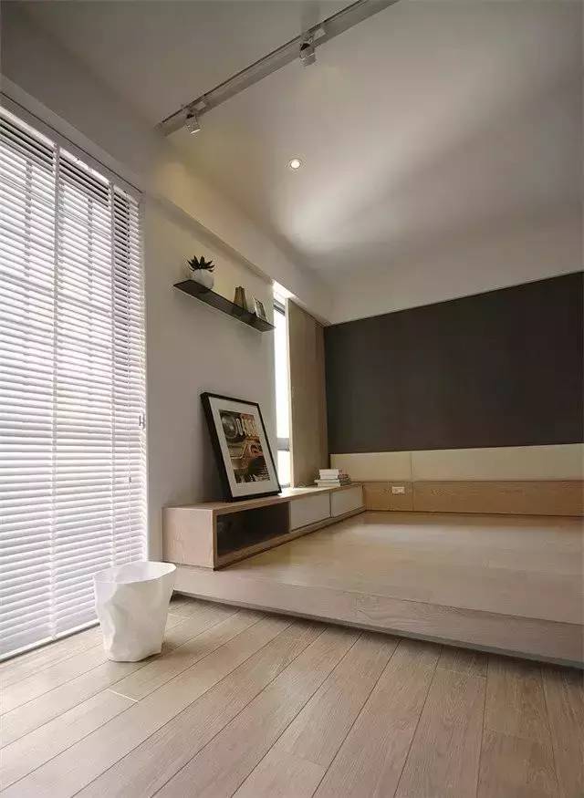 即便只具備單一的功能,但它同時(shí)兼顧了空間的整體性和色調(diào)的統(tǒng)一性。受房型限制,有些空間不足以合理的放置一張床,或者放置一張床后,床尾會(huì)存在尷尬的夾縫,藏污納垢又浪費(fèi)空間,這樣的榻榻米設(shè)計(jì)。