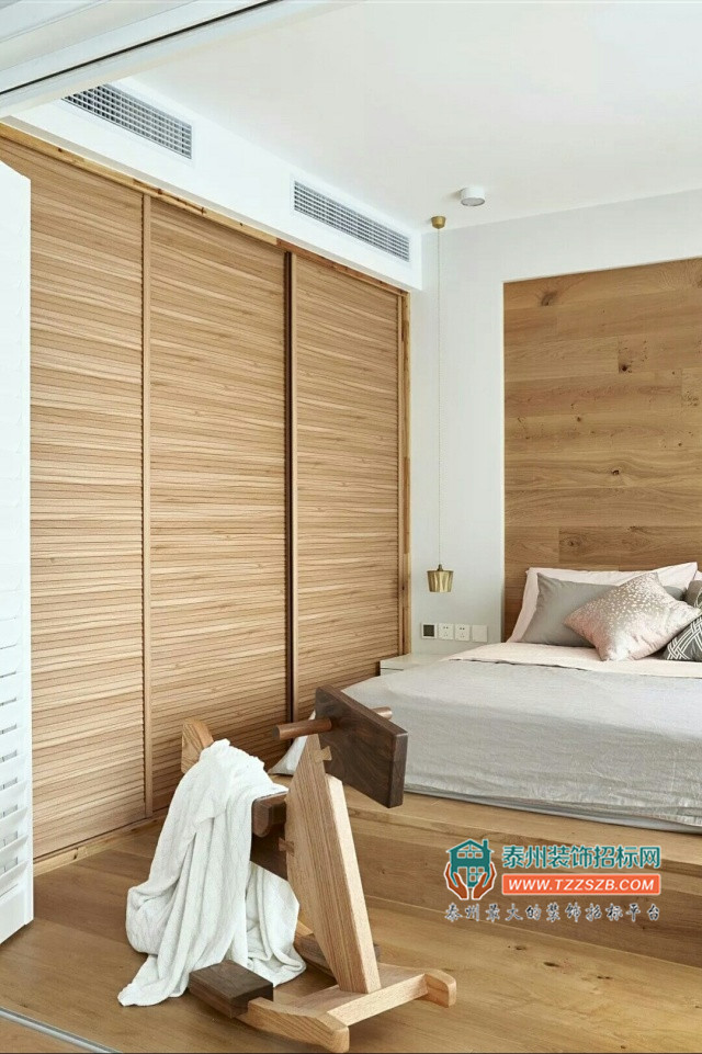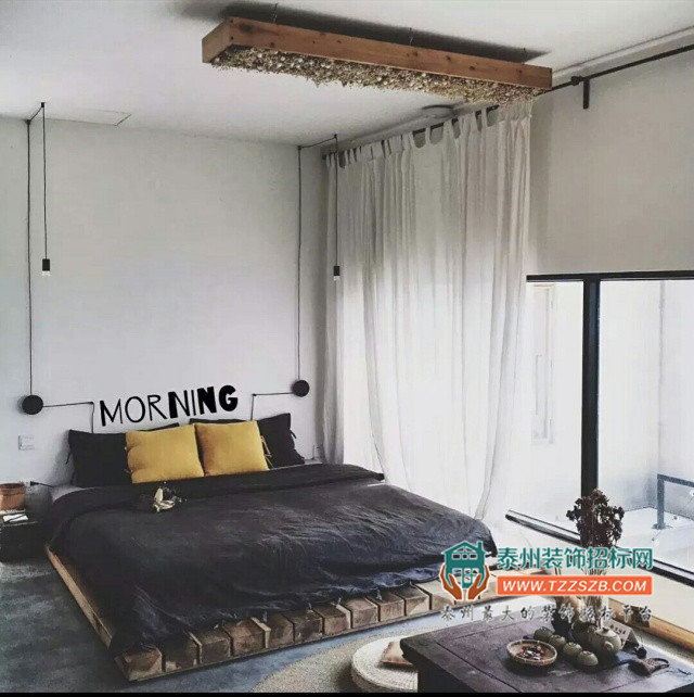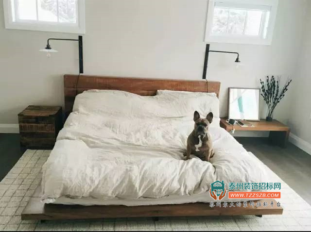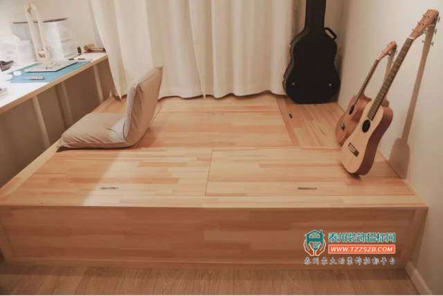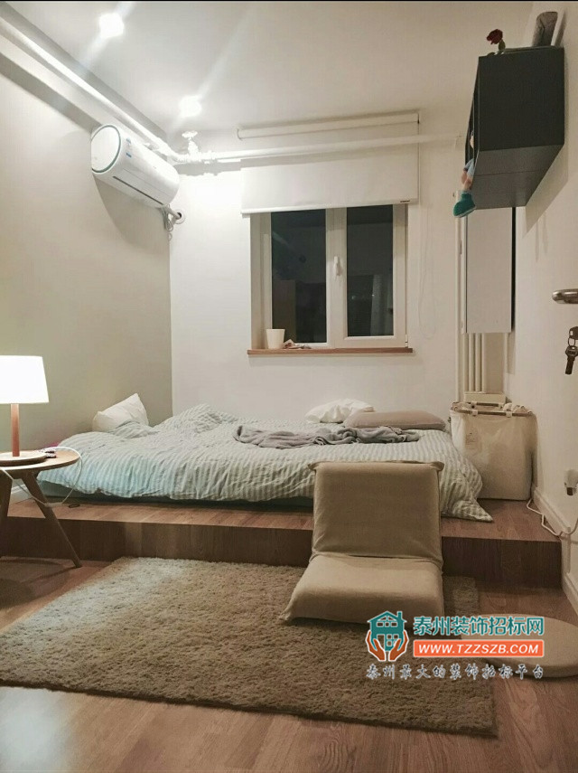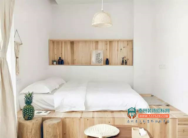 前幾天泰州裝飾招標網(wǎng)小編看到了一戶人家的裝修案例時,發(fā)現(xiàn)他們有一張很棒的床,深得朕心。當然普通的床已經(jīng)無法入我的法眼,這是一張地臺床。