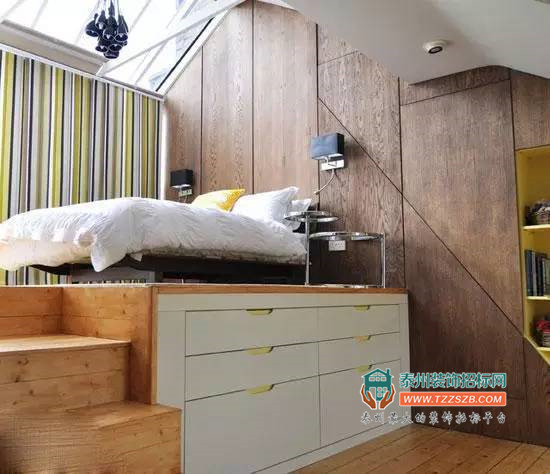 裝修有保障【導讀】前幾天泰州裝飾招標網(wǎng)小編看到了一戶人家的裝修案例時,發(fā)現(xiàn)他們有一張很棒的床,深得朕心。當然普通的床已經(jīng)無法入我的法眼,這是一張地臺床。 來,給你們看。 ▲地臺是可以作為儲物柜存在的,一個real巨大的空間,平時放上 ...