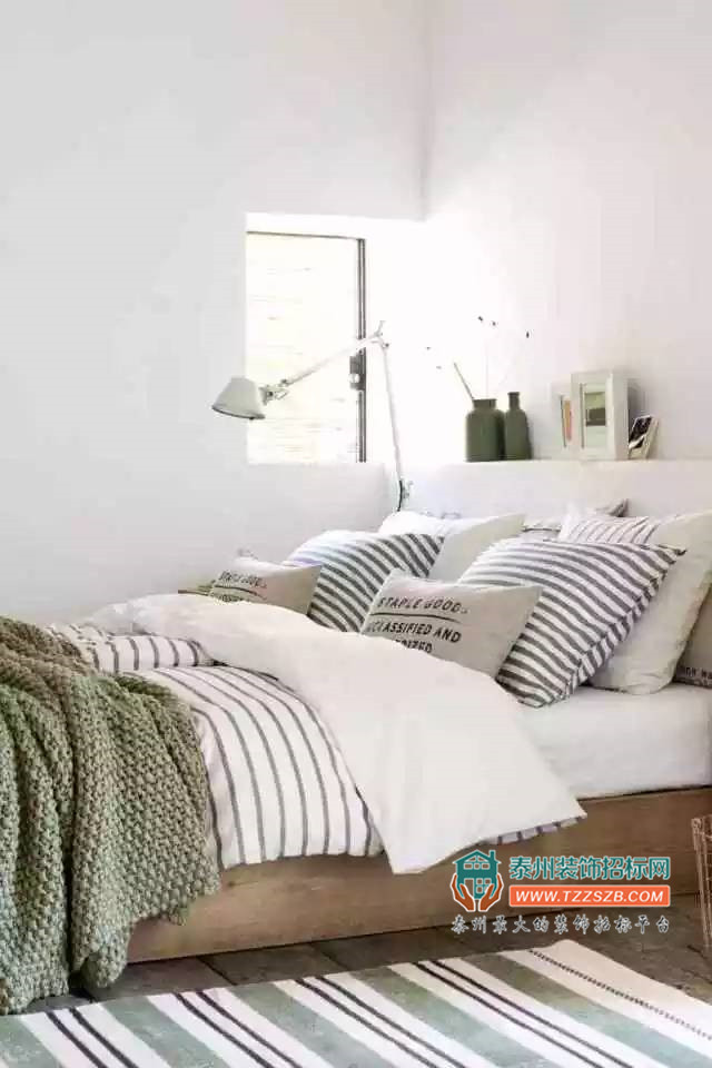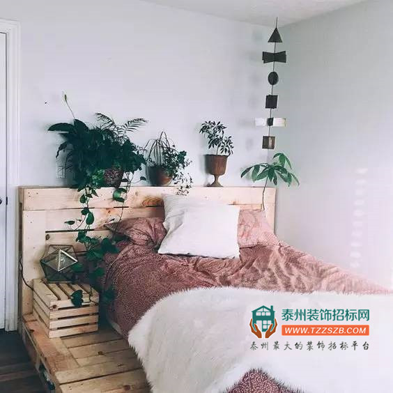 如果原木色太過單調(diào)的話,你就自己刷個漆,再鋪上尺寸合適的床墊,來點純色的床上四件套。