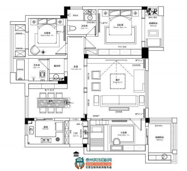 戶主要求盡可能的還原戶型的優(yōu)勢性,所以在風格確定的基礎上給了設計師很大的發(fā)揮空間,