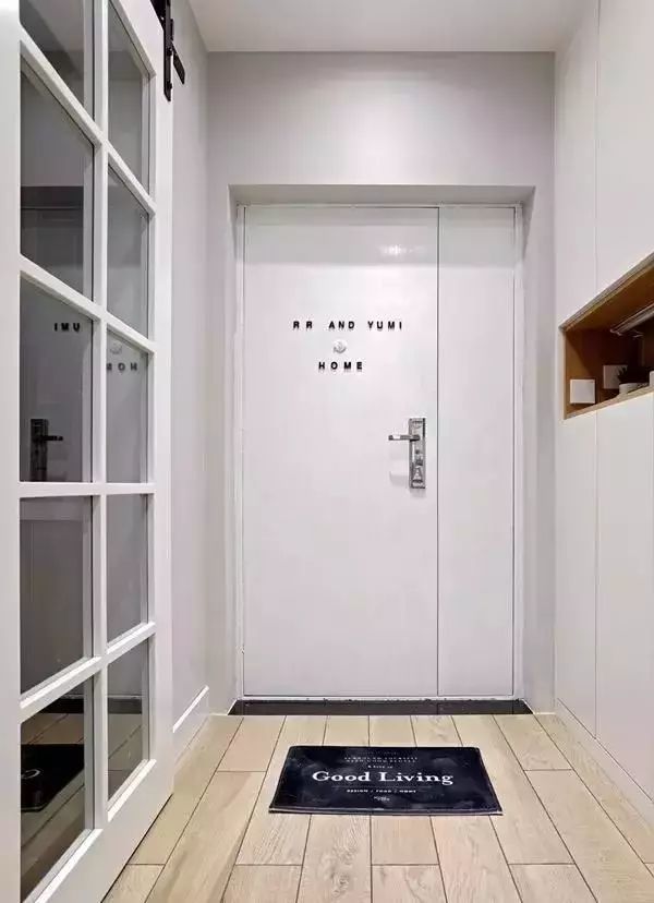 ▲入戶玄關(guān)其實(shí)是沒(méi)有玄關(guān)走廊的戶型,業(yè)主把客餐廳的空間縮減了一部分,靠近門的地方全部改成鞋柜和儲(chǔ)物間,這樣就營(yíng)造出了一個(gè)玄關(guān),可以收納很多東西,是不是超贊。