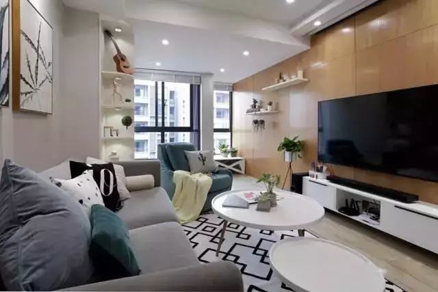 ▲主臥的門藏在了電視背景墻中,隱形門的設(shè)計(jì)更有意思,迷你的小茶幾和電視柜,作為承重墻的電視背景墻,不能做什么修改。