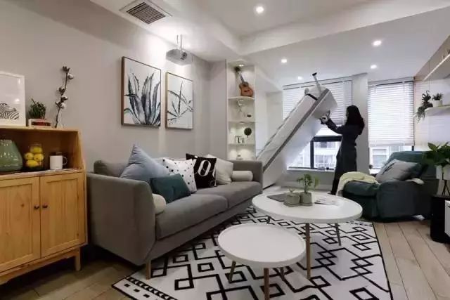 ▲有客人想要借住的時(shí)候,就可以把隱藏的壁床放下,就是隱私性不能得到很好的保證,但是可以考慮加裝一個(gè)窗簾。