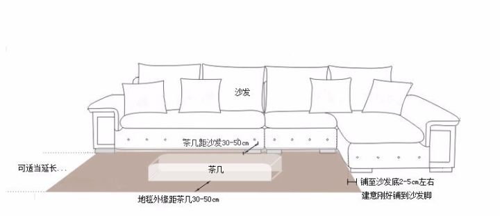 方式二:把地毯放在沙發(fā)“腳”下