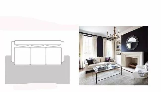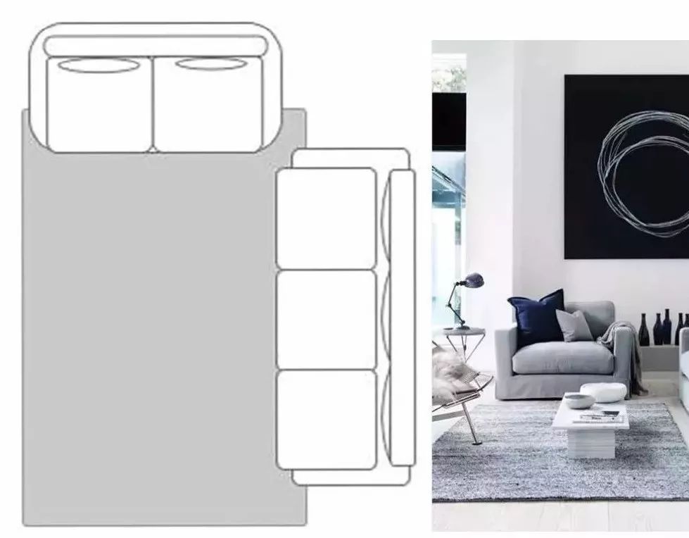 這樣的鋪設(shè)方式,適用于空間較為大的客廳,整體空間可以看起來更為大氣簡潔,更好凸顯空間的整齊氛圍。這樣的話地毯一般選擇的尺寸在2*3米或是定制的尺寸,有了地毯怎么鋪的好看呢,看看下面這張圖就明白啦
