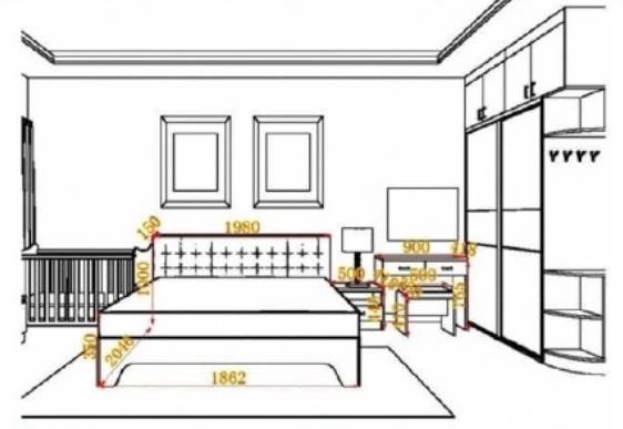A:根據床的大小而確定,1500mm的床放500mm寬左右的床頭柜;1800mm的床則需要600mm寬以上,高度略低于床。