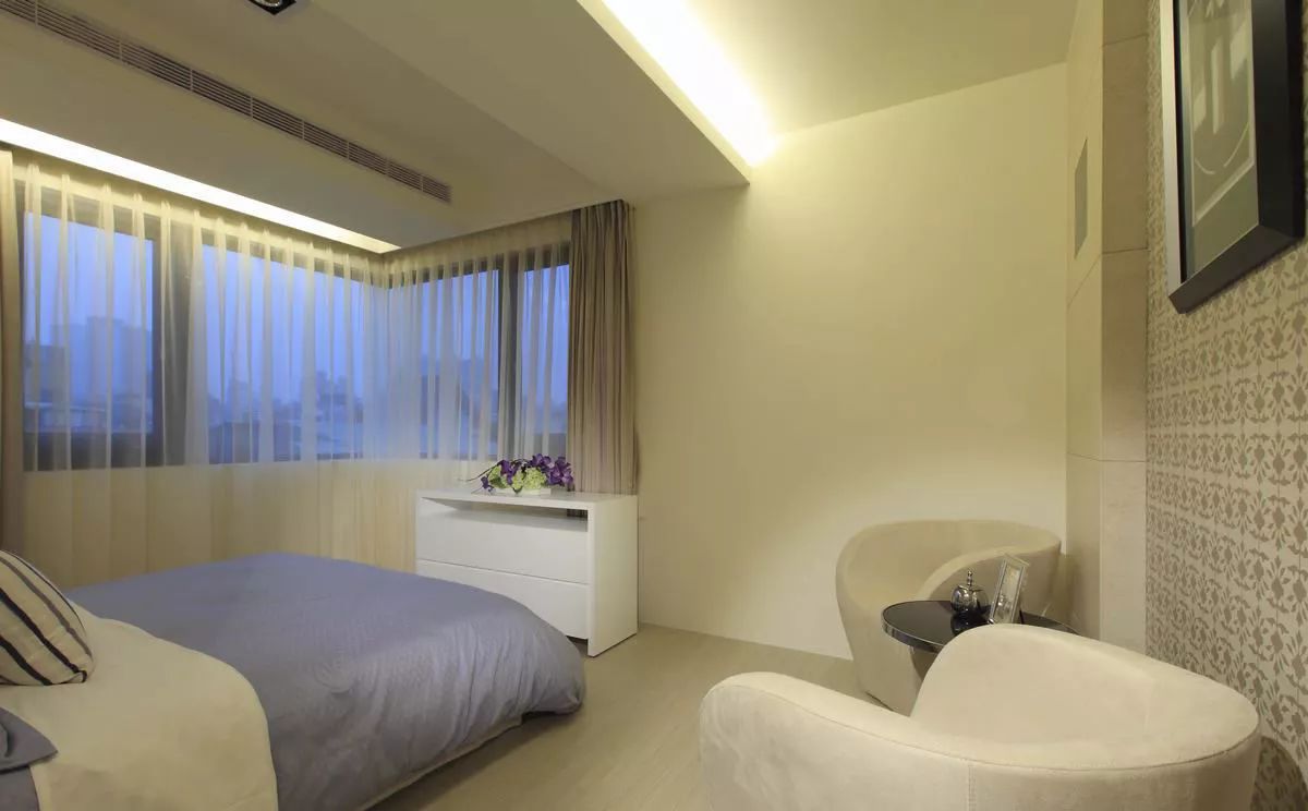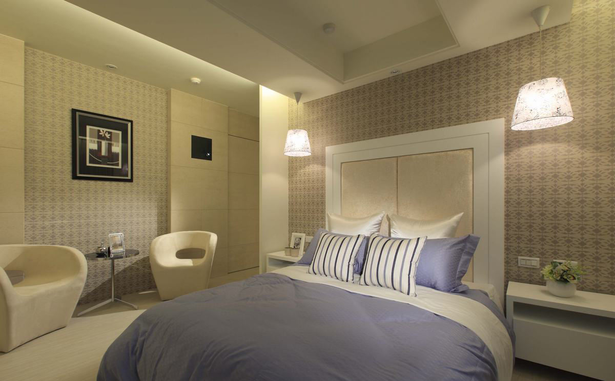 ▲臥室空間色調(diào)沿用客餐廳,配上柔軟床鋪與溫馨吊燈,營造完美舒適休憩空間。