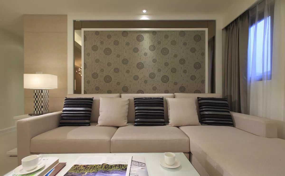 ▲客廳空間基于北歐風(fēng)格來搭配家具,沙發(fā)區(qū)采用米白色增加暖意,配上圓形元素的沙發(fā)背景墻,增加立面趣味性。