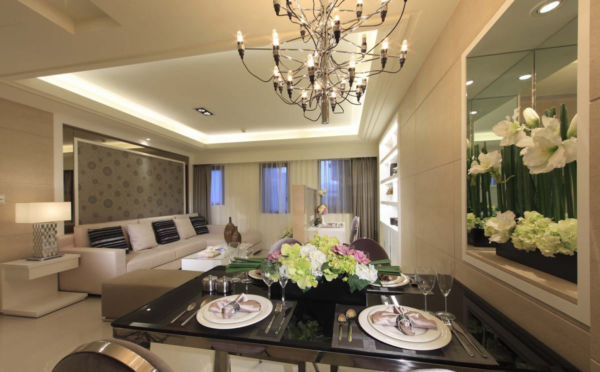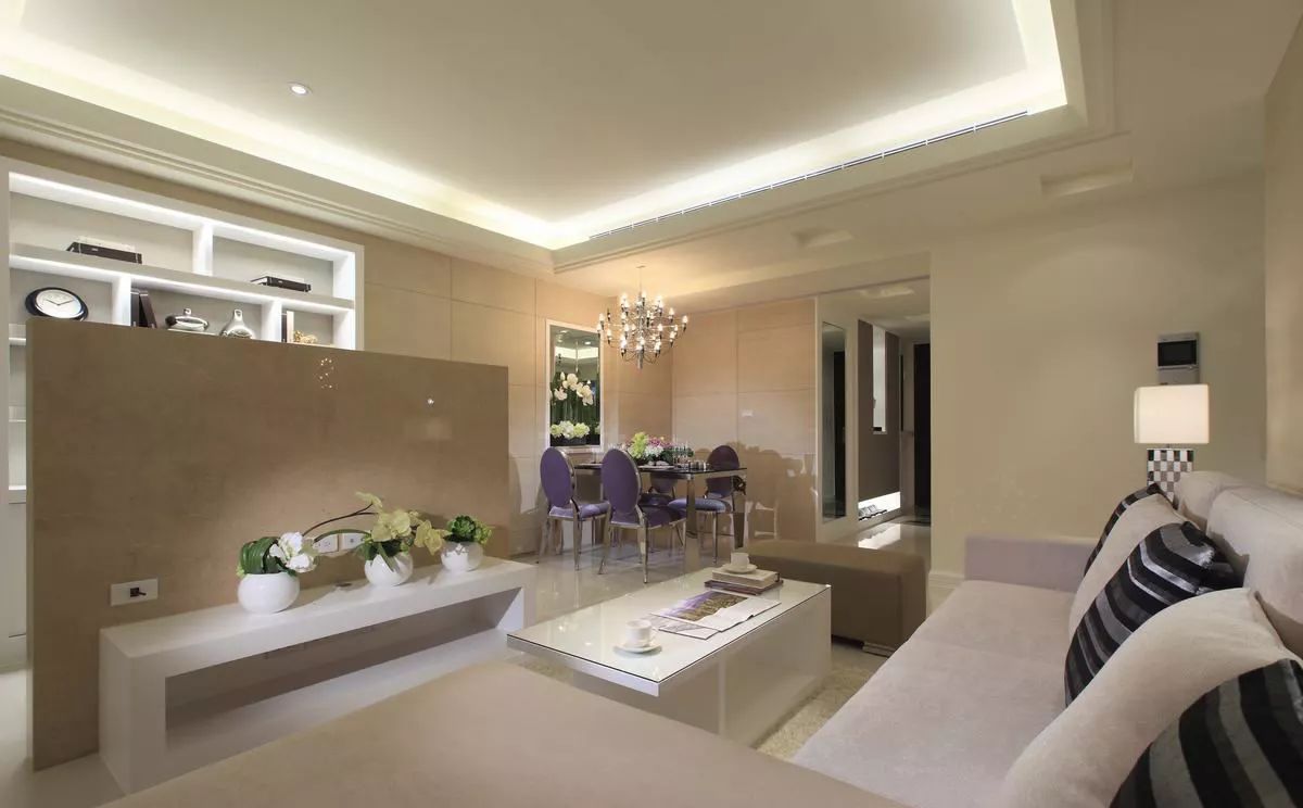 ▲客廳空間采用常見的回字形吊頂設(shè)計,形成開放式格局,營造視覺穿透感,增加客廳寬敞氣勢。