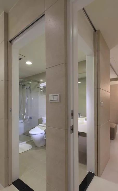 ▲由于這套小戶型只有一間衛(wèi)浴,設(shè)計師不是從戶型改造方面下手,而是匠心獨運的從衛(wèi)浴靠近臥室一側(cè)再開一扇門,減少戶型改造成本,并且形成合理動線滿足生活需求。