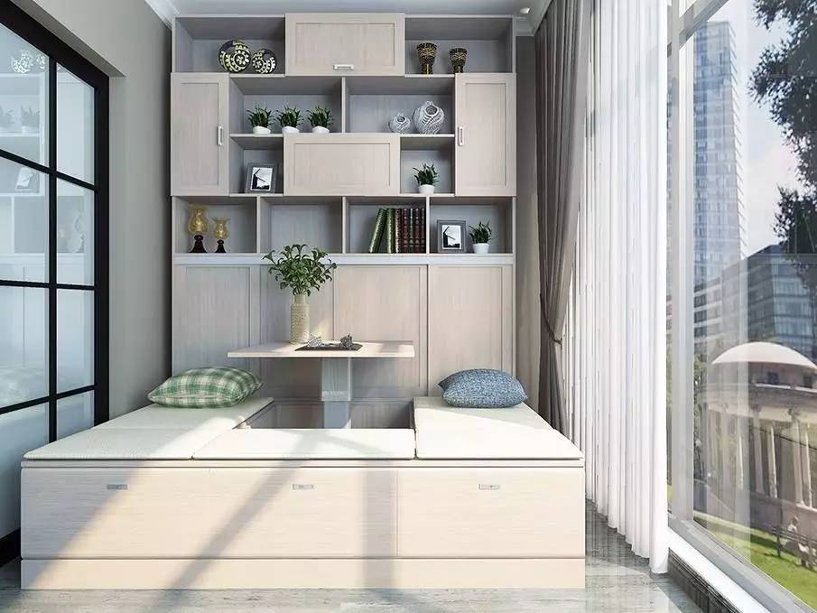 ▲這是一個組合式的榻榻米設(shè)計,陽臺太大,想要晾衣服又想做成休息區(qū)域,可以選擇這種設(shè)計喲。暖暖的陽光照射進(jìn)來,是不是很美呢?