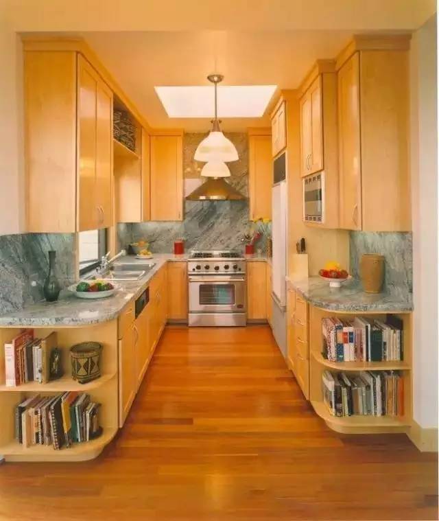 ▲廚房的拐角處,也是一個很不錯的藏書格。放置一些菜譜,實(shí)在再好不過了!