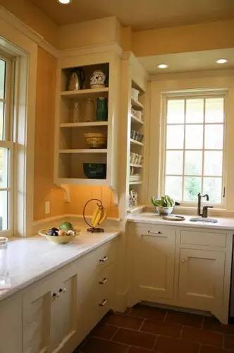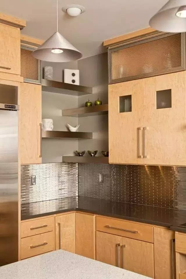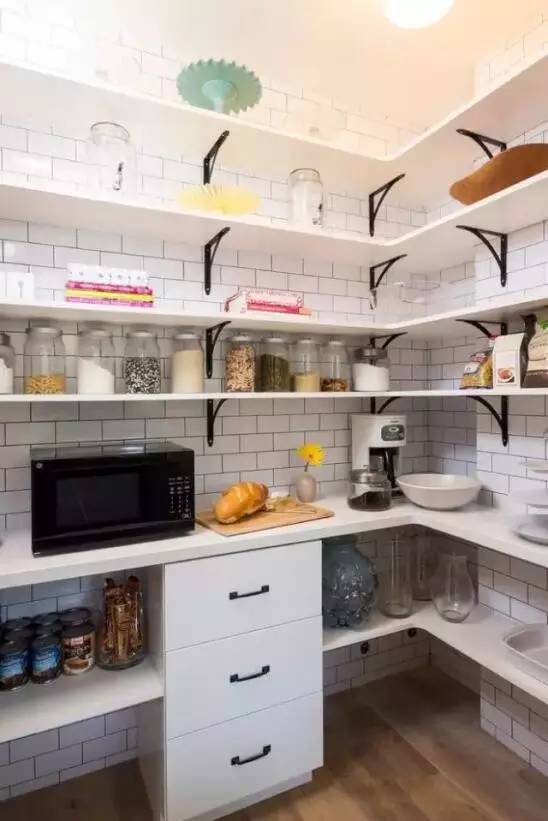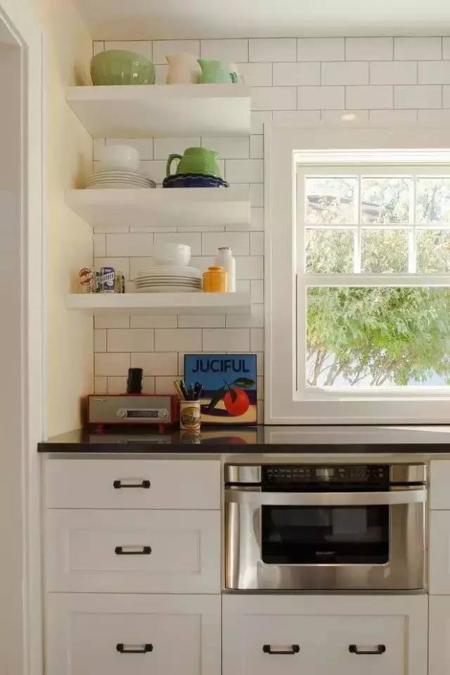 ▲廚房死角很多,很多女主人覺得廚房少了收納,這樣的上墻設(shè)計如何?不用買置物架掛著,直接用隔板,不僅簡單,還美觀。