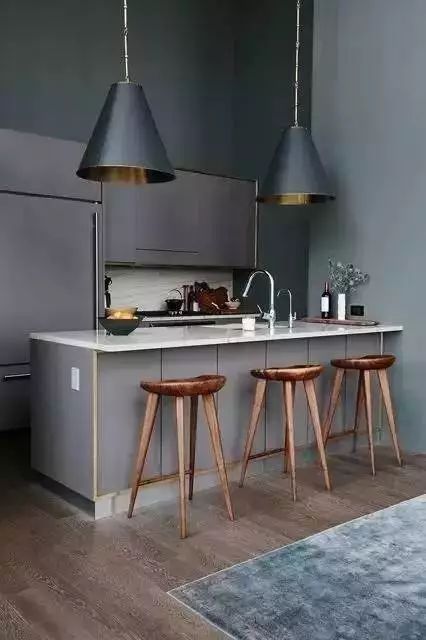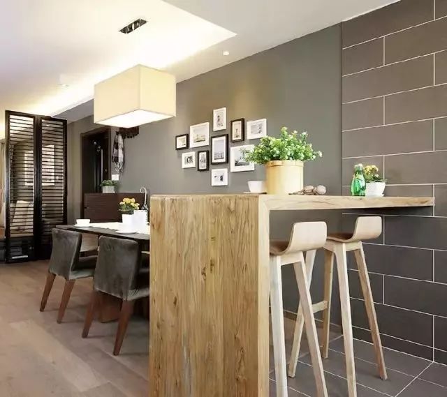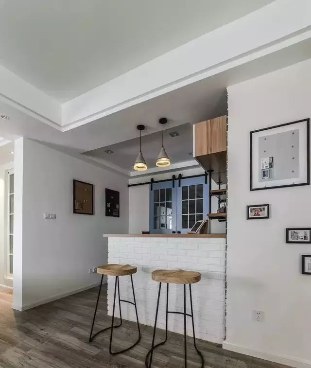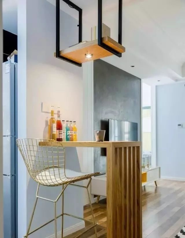 過道的吧臺設(shè)計(jì),是浪漫與藝術(shù)的相遇,吧臺具有隔斷、改善視覺、擴(kuò)大空間范圍的效果。