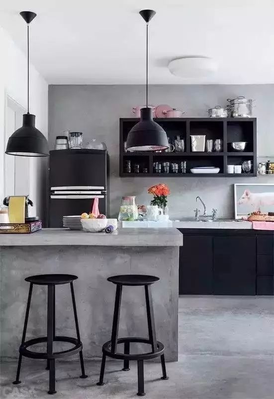 開放式廚房的吧臺,不僅在空間上起到分隔的作用,還可以當(dāng)小餐桌,喝酒聊天;還能擴(kuò)展食材處理區(qū)域用來備餐,一舉多得。