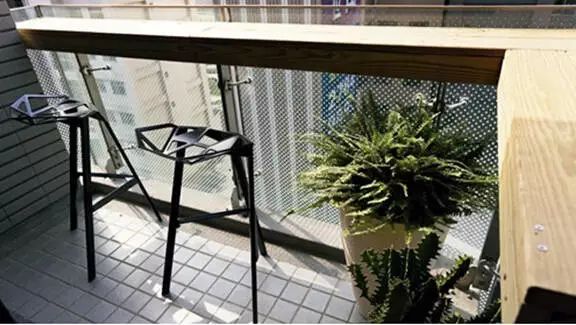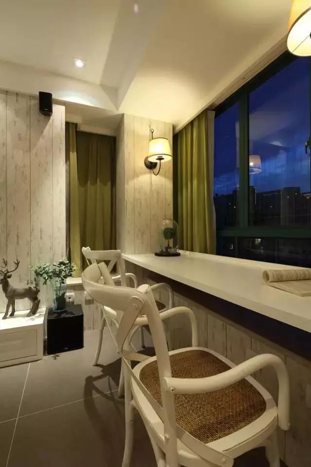 時(shí)尚的陽臺設(shè)計(jì)一個(gè)小吧臺,擺上幾把造型豐富的吧椅,周末可以坐在這里休憩,別有一番風(fēng)味。
