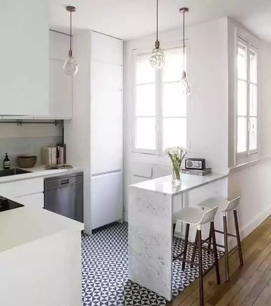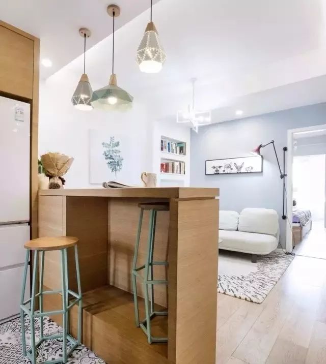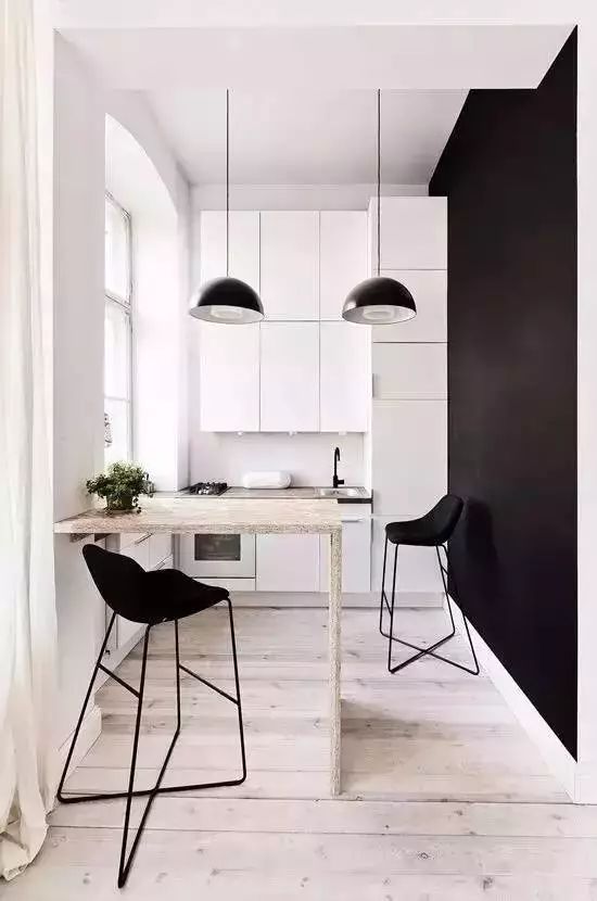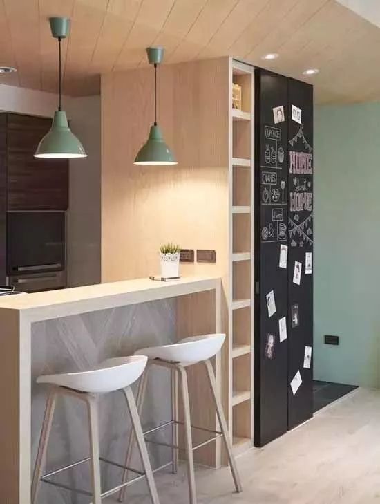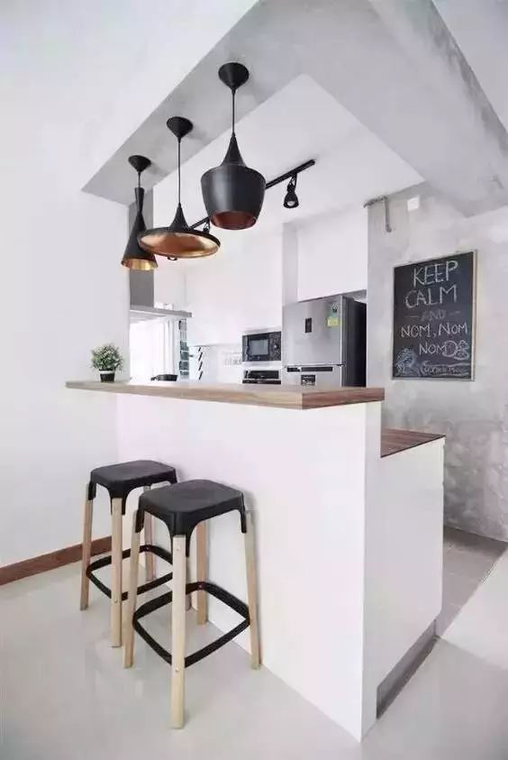 喜歡二人世界的家庭,不如設(shè)計(jì)一個(gè)小吧臺,享受邊煮邊吃的同時(shí),還可以有一個(gè)休閑的小角落。