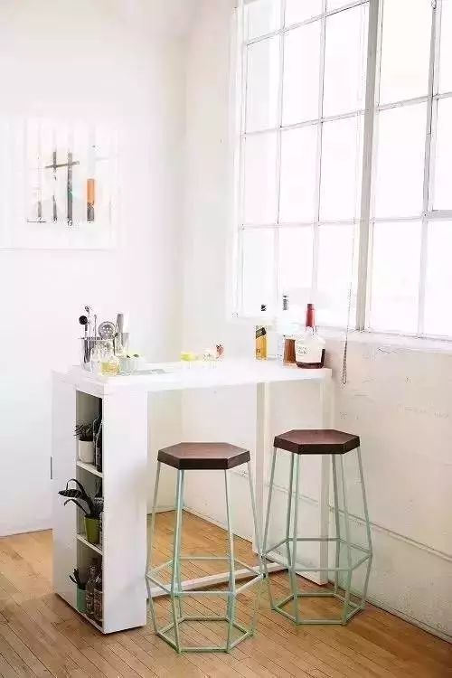 窗邊做一個(gè)小吧臺也不錯(cuò),再加上旁邊的收納設(shè)計(jì),不僅能當(dāng)書桌、餐桌,還讓居室頓時(shí)時(shí)尚不少。