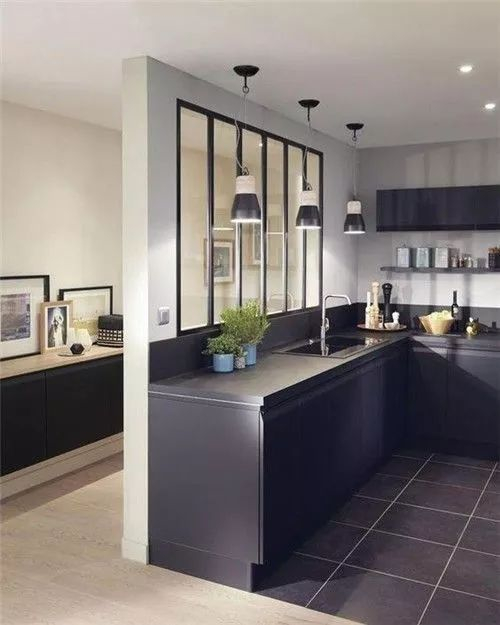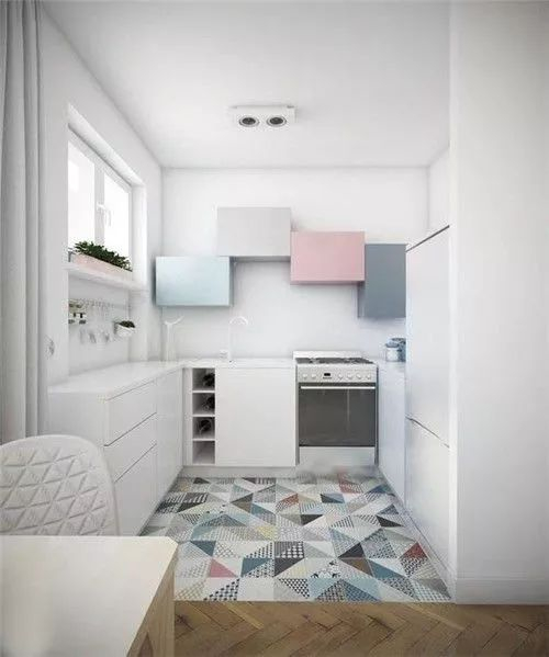局部鋪貼瓷磚的方式更加適用于開(kāi)放式空間,特別是開(kāi)放式廚房,大家不妨在廚房經(jīng)?;顒?dòng)的區(qū)域內(nèi)鋪上瓷磚,這樣會(huì)使廚房看上去更有夜色。