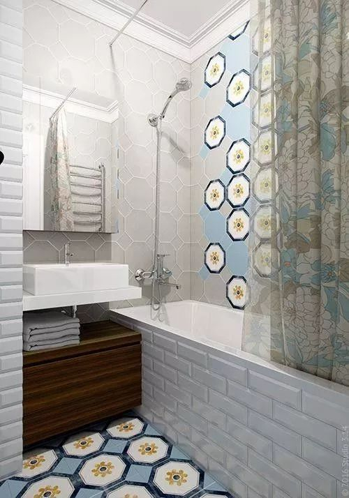呼應(yīng)鋪貼就是將墻面與地面局部或者整體使用同種花色的瓷磚進(jìn)行鋪貼,整體空間看起來(lái)很協(xié)調(diào),而且這種鋪貼方式也非常有新意。