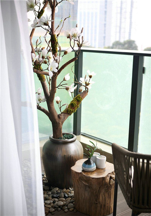 在陽臺出放著了一株梅花,可見女主人的品質(zhì)亦是如此,不經(jīng)意間讓我想起了這首古詩“墻角數(shù)枝梅,林寒獨自開”。