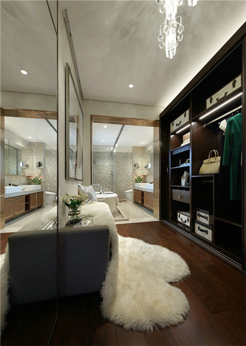 衣帽間與衛(wèi)生間相鄰,但是在衛(wèi)生間做了很好的干濕分離,所以衣服不怕潮濕呦,衛(wèi)生間的干濕分離一定要做好。