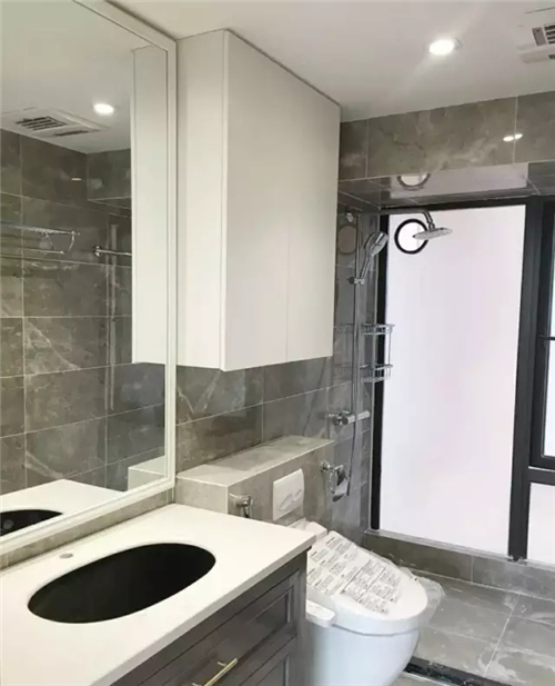 馬桶上方放鏡子除了日常的使用功能,還有擴(kuò)容的功能。鏡子可以反射、折射、增加室內(nèi)的亮度,讓空間在視覺效果上翻倍。