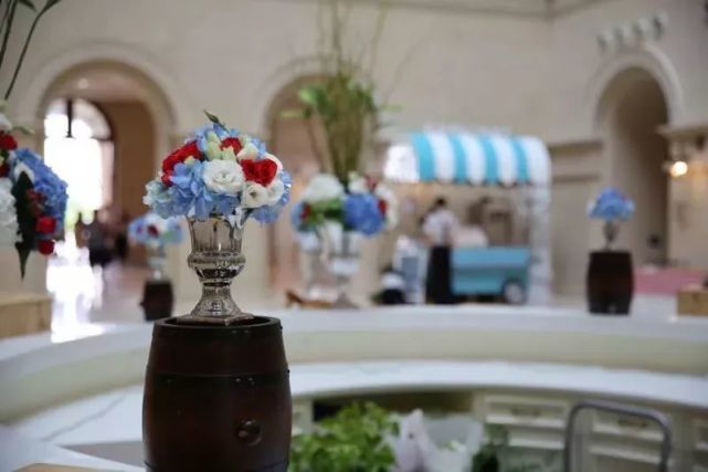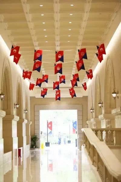 上午就看到寬敞的大堂里,不少俊美靚麗的小哥哥小姐姐在忙忙碌碌地布置場(chǎng)地,主元素依然是藍(lán)白紅。