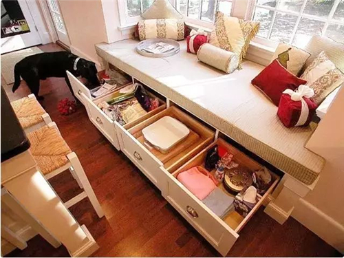 在飄窗處裝上榻榻米,晴好時(shí)坐在窗邊可以觸摸陽光,看云卷云舒;風(fēng)雨時(shí)坐在窗邊可以聽滴答雨聲,看顆顆雨珠。一次小坐就是一段舊時(shí)光。