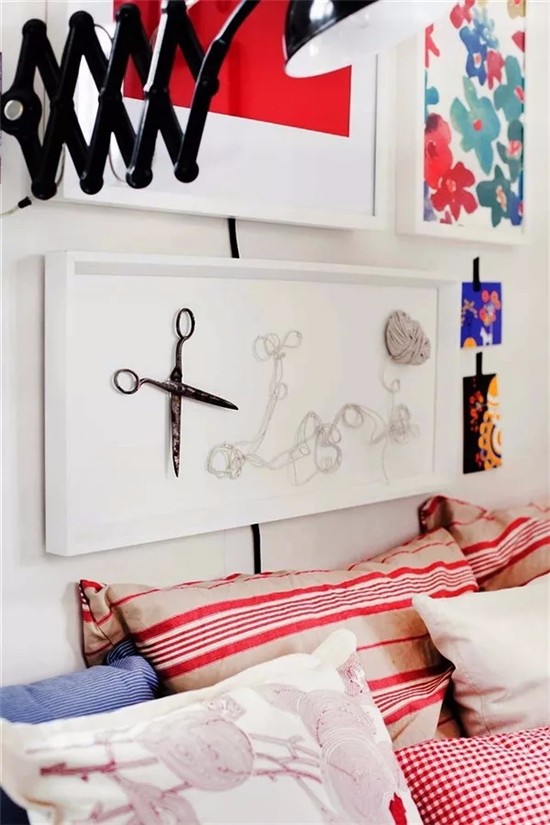 臥室還是蠻有格調(diào)的,風(fēng)格和顏色與客廳一脈相承。遠遠地看,少許的紅與綠顯得無比明快。