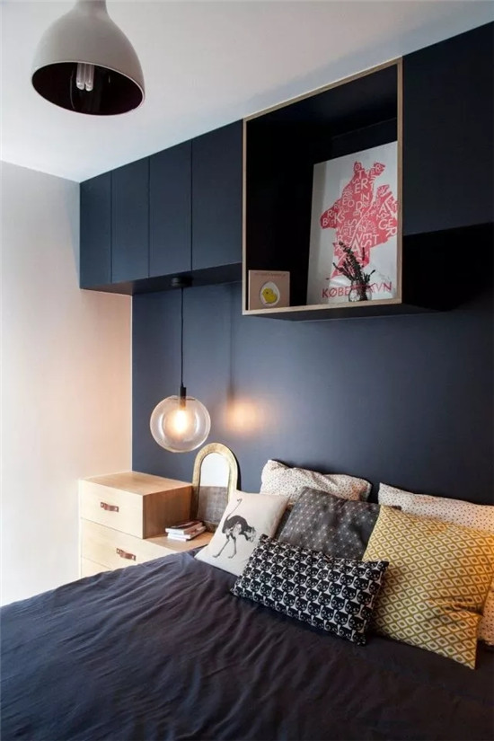 ▲ 臥室利用深色飾面系統(tǒng)柜