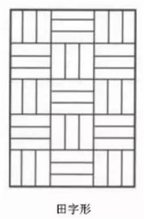 田字鋪貼法就是將幾塊同樣長(zhǎng)度的長(zhǎng)方形木板拼接成正方形,然后橫豎更替,做成一個(gè)田字格的造型。