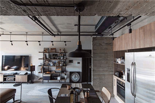 裝修有保障【導(dǎo)讀】極簡(jiǎn)主義裝飾理念 一般工業(yè)風(fēng)都讓人第一感覺(jué)很冷,該案屋主卻認(rèn)為,顏色越深才能完美表達(dá)工業(yè)感的氛圍。 使用黑色的明裝吊軌射燈,燈光打開(kāi)后并沒(méi)有想象那么冷。 電視背景墻由兩個(gè)成品家具柜組成,其中擺放屋主從四處各 ...
