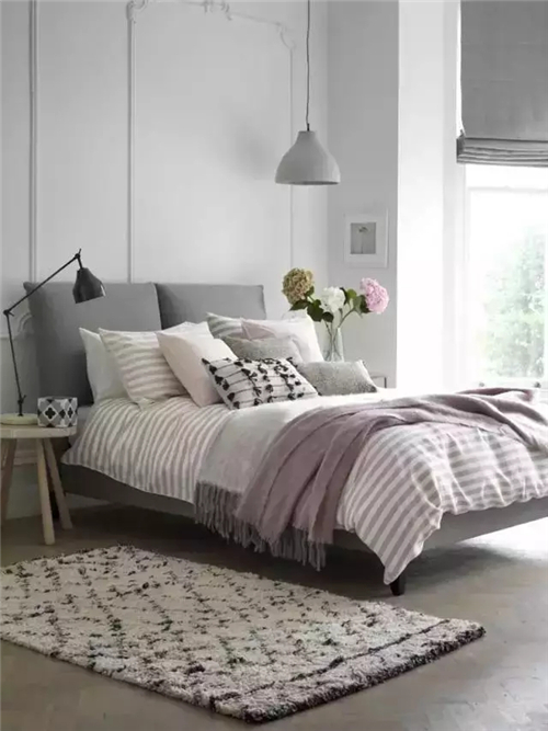 針對單人臥室,床的一側(cè)可靠墻擺放,增加安全感。而針對雙人臥室,在戶型條件允許下,雙人床盡量不要靠墻擺放,并且床的兩側(cè)應(yīng)有至少50cm的空間,既能放置床頭柜,又能方便家人上下床和整理床鋪等活動。