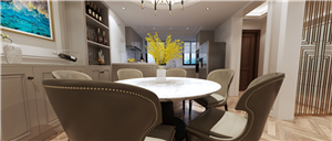 現(xiàn)代風格把整個環(huán)境統(tǒng)籌調度起來,以局部明黃、孔雀藍以點綴,起到畫龍點睛之筆。