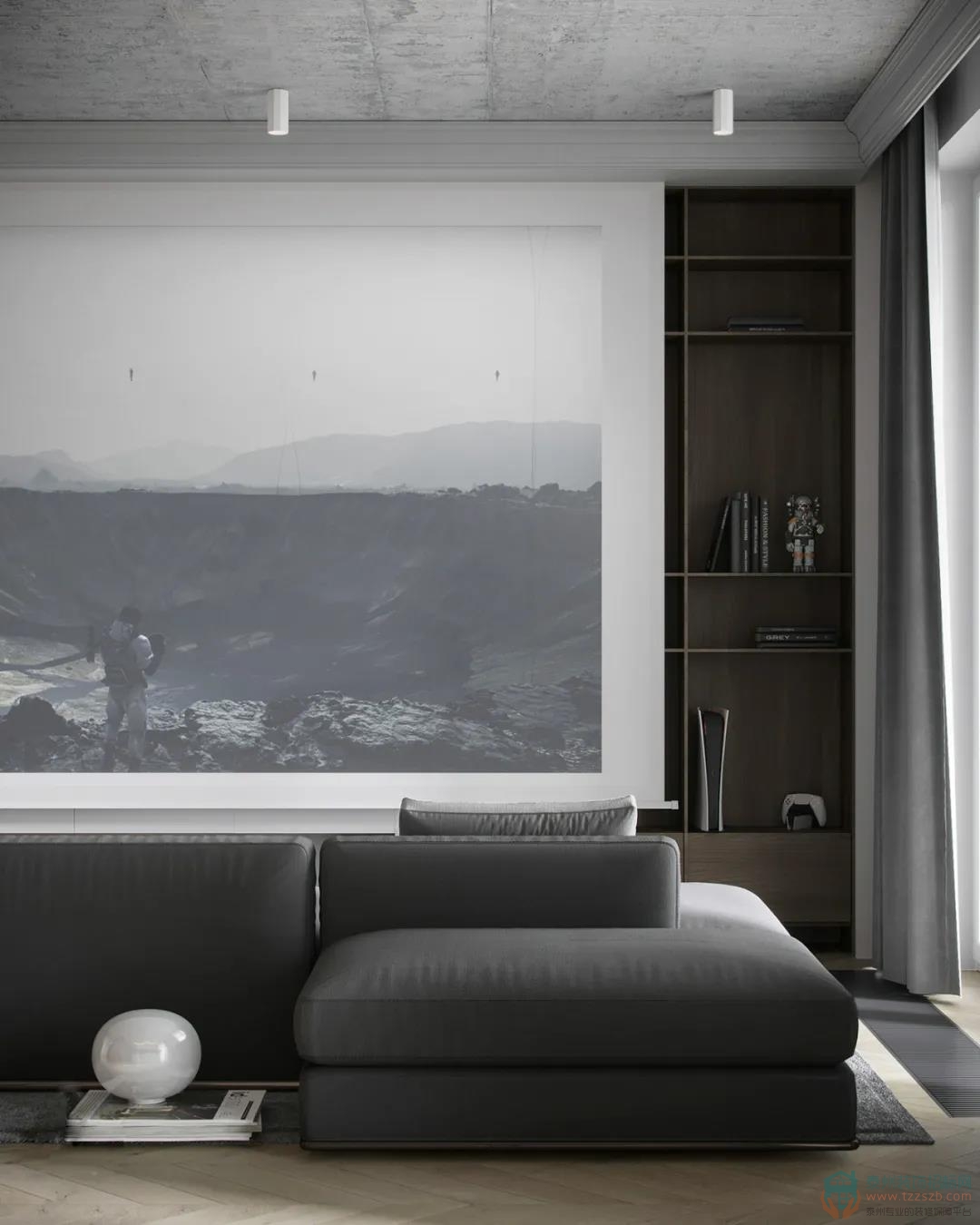 裝修有保障【導讀】本案為面積90㎡的住宅設計,整個室內空間以灰白色為主色調,配以黃色與木飾面做點綴。 房間的頂部使用水泥漆打造出斑駁的質感,空間層次更加豐富。 沒有放置電視,而是以投影替代,對于不??措娨暤哪贻p人來說,體驗感極強。 ...