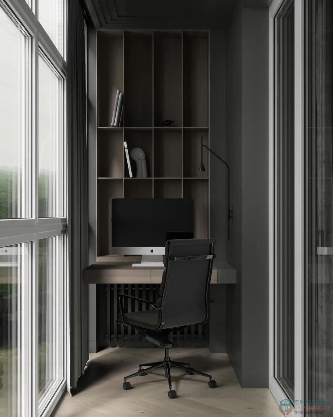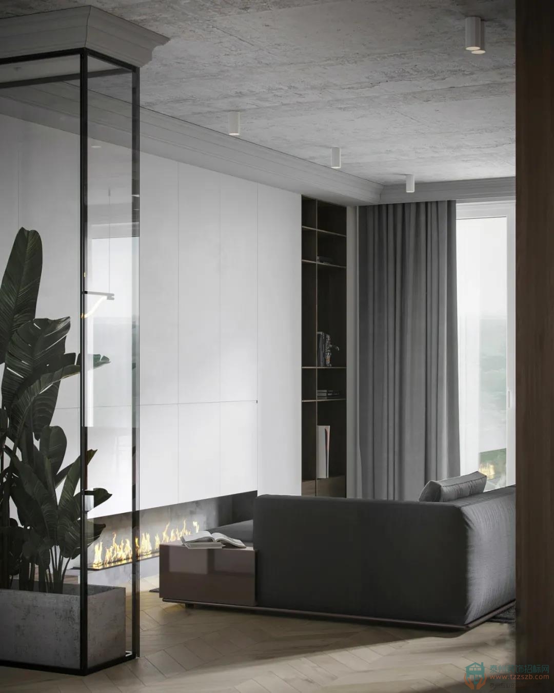 本案為面積90㎡的住宅設計,整個室內空間以灰白色為主色調,配以黃色與木飾面做點綴。