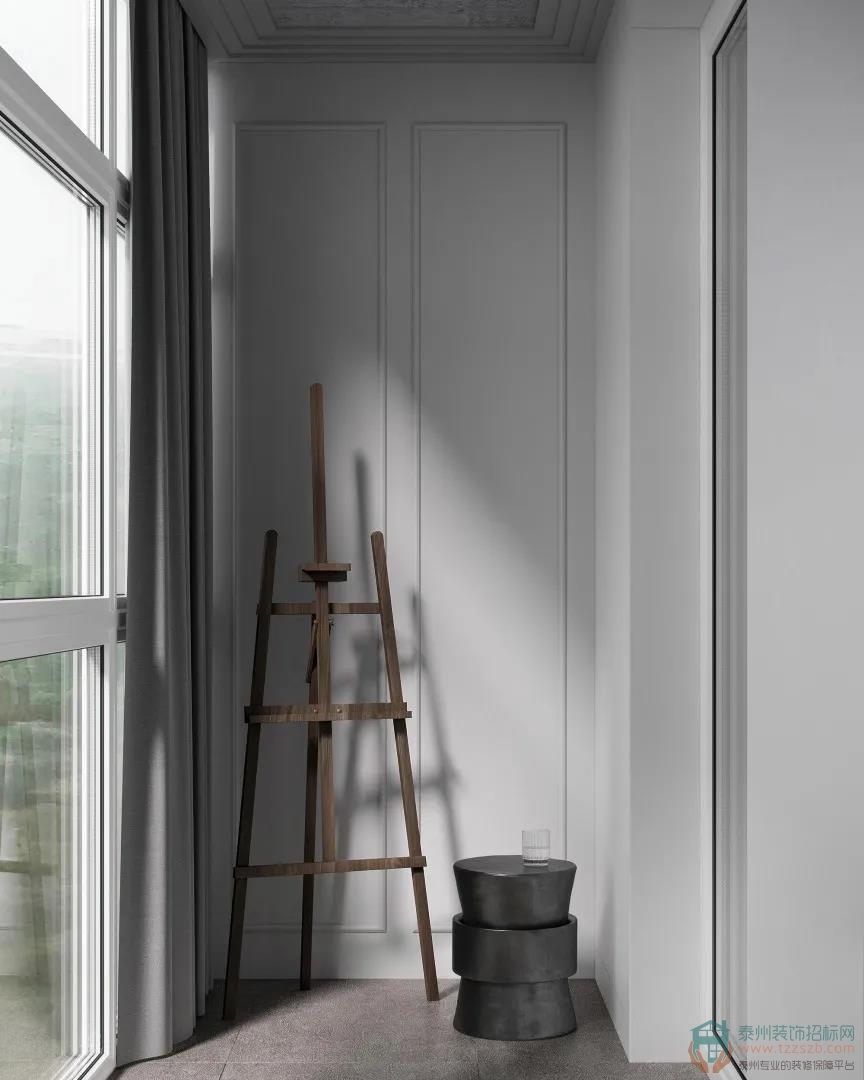 陽臺區(qū)域不僅是作為休息使用,同時也用作女主人的畫室。