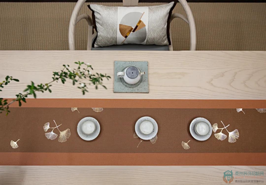 而這也成為本案設(shè)計(jì)師的色彩靈感來源,日系色譜中的“赤錆色”始終貫穿了整個(gè)軟裝設(shè)計(jì)的跳色來源,這個(gè)源自礦石的顏色,在本案中綻放出秋季一般溫暖的色澤,體現(xiàn)出氤氳暖陽下,茶香染年華的禪意生活。