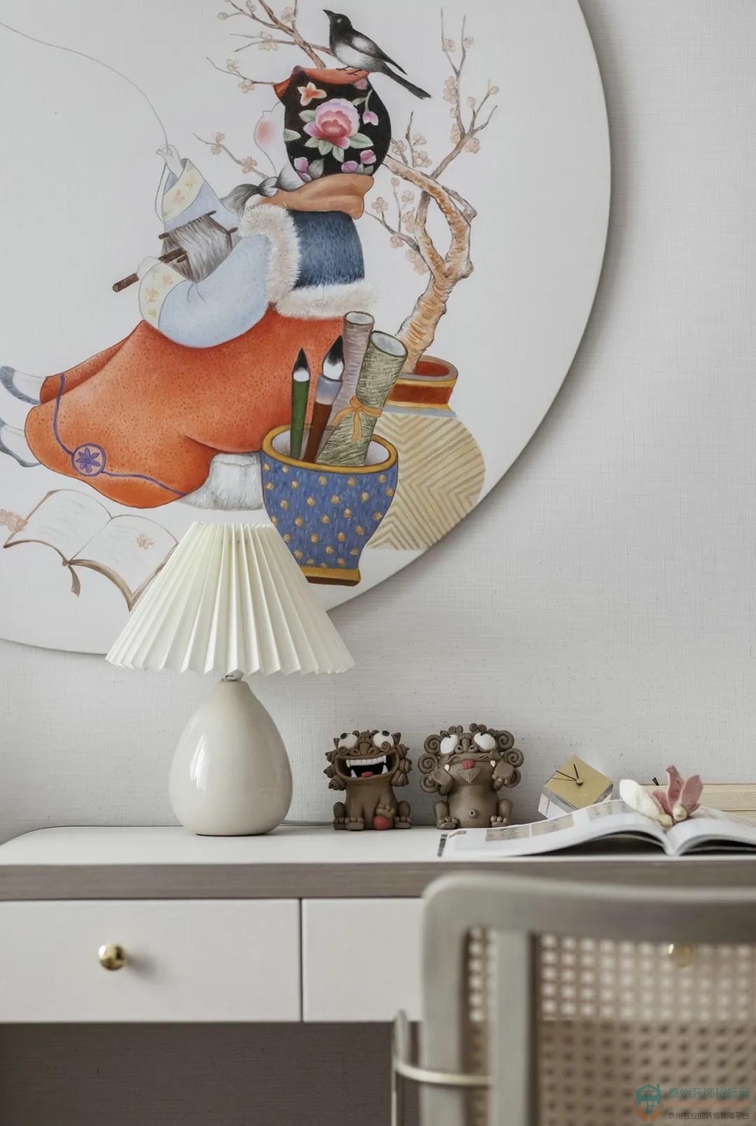 女兒房透露著東方女性的柔德,同時(shí)得到充滿民俗意趣的小擺件的加持,彰顯著家族的教養(yǎng)傳承。